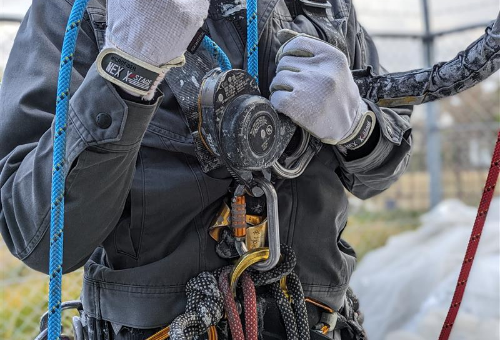 また、弊社ではロープアクセスの国際資格、IRATAを取得している社員が複数在籍しており、ロープアクセス技術を使用した鉄塔塗装修繕をしております。