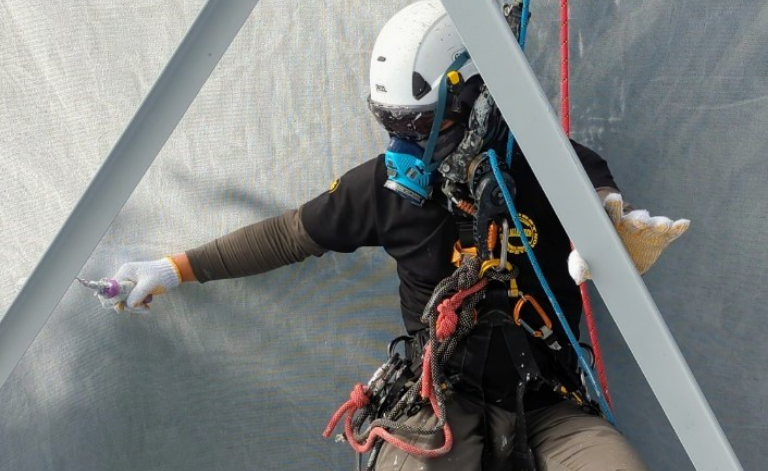 ・ロープワーク、無足場、鉄塔塗装、修繕、インフラ点検、補修、ビル外壁、看板の点検、補修